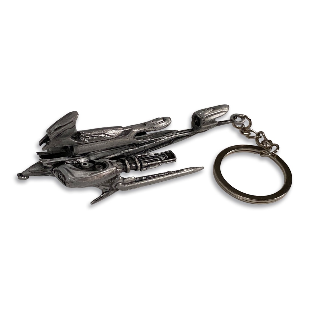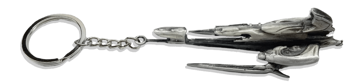 Admittedly much easier to bring with you than your actual Railjack, this die-cast metal keychain is sure you to give your keys a Sigma Series flair! Length of ship: 3.5 in. Total length with keychain: 5.9 in.